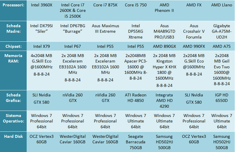 Tutti i test si sono svolti sulle seguenti piattaforme: